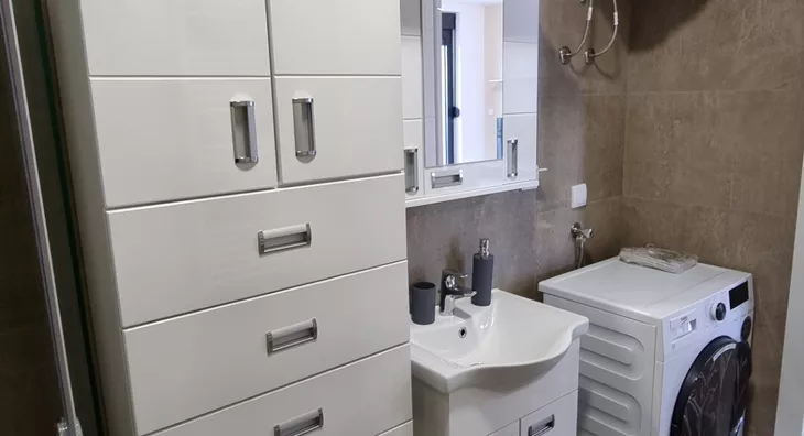 - Opremljenost: Namešteno - internet, TV, klima, veš mašina, kuhinjski elementi, frižider, zamrzivač, rerna, plakar