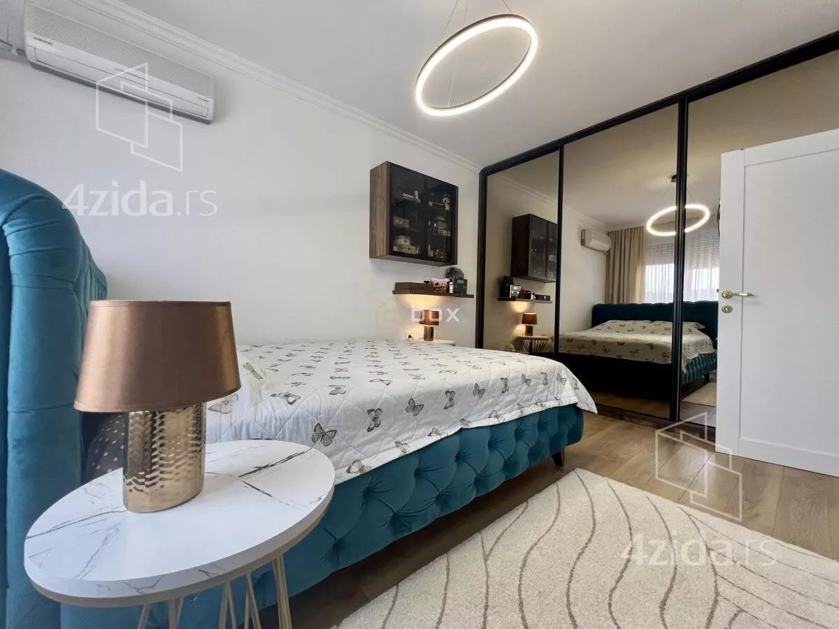 - Opremljenost: Namešteno - internet, interfon, TV, klima, veš mašina, sudo mašina, frižider, rerna, ležaj, plakar, kanalizacija