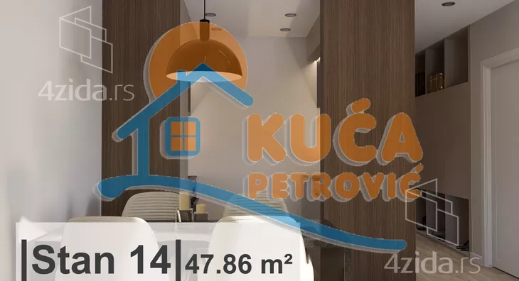 Na prodaju ekskluzivna novogradnja u centru. Stambeno poslovni objekat Po+P+8. Stan je projektovane površine 47,86m2. Nalazi se na trećem spratu, čine ga ulazni hodnik, dnevna soba sa trpezarijom i kuhinjom, spavaća soba, toalet, kupatilo i terasa. Svaka stambena jedinica ima nezavisan sistem grejanja i hlađenja koji je automatizovan i moguće ga je kontrolisati putem mobilnog uređaja. Sistem za grejanje je postavljen kroz pod sa elektro-kotlom, dok je rashladni sistem sa invertor klimama. Svi podovi izvedeni su kao plivajući sa ugrađenom zvučnom izolacijom. Na podu je višelojni parket, a u kupatilu granitna keramika. Unutrašnja stolarija izrađena je od visoko kvalitetnog furnira, dok je spoljna stolarija od aluminijuma. Za kupce prvog stana postoji mogućnost povratka PDV-a. Postoji mogućnost kupovine parking mesta. Ovo je samo deo naše ponude, za više informacija stojimo Vam na raspolaganju.