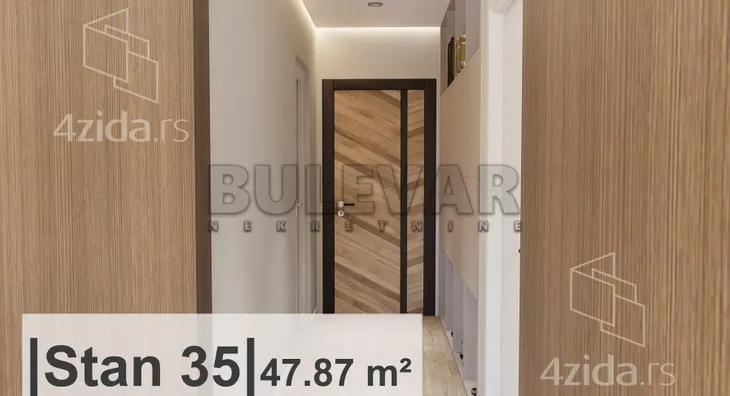 Na prodaju ekskluzivna novogradnja u centru. Stambeno poslovni objekat Po+P+8. Stan je projektovane površine 47,87m2. Nalazi se na osmom spratu, čine ga ulazni hodnik, dnevna soba sa trpezarijom i kuhinjom, spavaća soba, toalet, kupatilo i terasa. Svaka stambena jedinica ima nezavisan sistem grejanja i hlađenja koji je automatizovan i moguće ga je kontrolisati putem mobilnog uređaja. Sistem za grejanje je postavljen kroz pod sa elektro-kotlom, dok je rashladni sistem sa invertor klimama. Svi podovi izvedeni su kao plivajući sa ugrađenom zvučnom izolacijom. Na podu je višelsojni parket, a u kupatilu granitna keramika. Unutrašnja stolarija izrađena je od visoko kvalitetnog furnira, dok je spoljna stolarija od aluminijuma. Za kupce prvog stana postoji mogućnost povratka PDV-a. Postoji mogućnost kupovine parking mesta. Ovo je samo deo naše ponude, za više informacija stojimo Vam na raspolaganju.