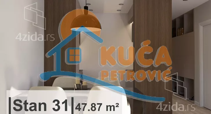 Na prodaju ekskluzivna novogradnja u centru. Stambeno poslovni objekat Po+P+8. Stan je projektovane površine 47,87m2. Nalazi se na sedmom spratu, čine ga ulazni hodnik, dnevna soba sa trpezarijom i kuhinjom, spavaća soba, toalet, kupatilo i terasa. Svaka stambena jedinica ima nezavisan sistem grejanja i hlađenja koji je automatizovan i moguće ga je kontrolisati putem mobilnog uređaja. Sistem za grejanje je postavljen kroz pod sa elektro-kotlom, dok je rashladni sistem sa invertor klimama. Svi podovi izvedeni su kao plivajući sa ugrađenom zvučnom izolacijom. Na podu je višeslojni parket, a u kupatilu granitna keramika. Unutrašnja stolarija izrađena je od visoko kvalitetnog furnira, dok je spoljna stolarija od aluminijuma. Za kupce prvog stana postoji mogućnost povratka PDV-a. Postoji mogućnost kupovine parking mesta. Ovo je samo deo naše ponude, za više informacija stojimo Vam na raspolaganju.