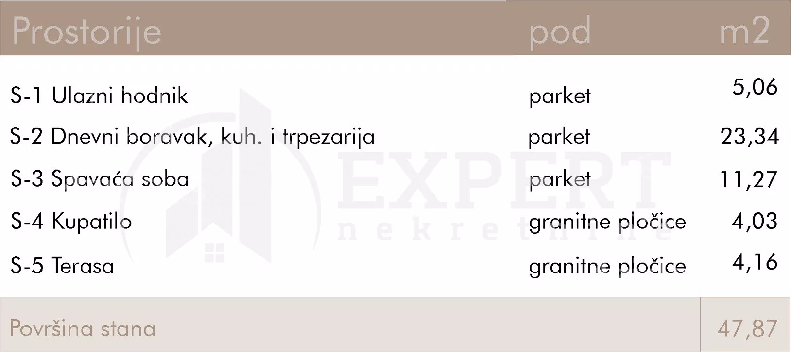 - Prostorije: kupatilo, toalet, terasa