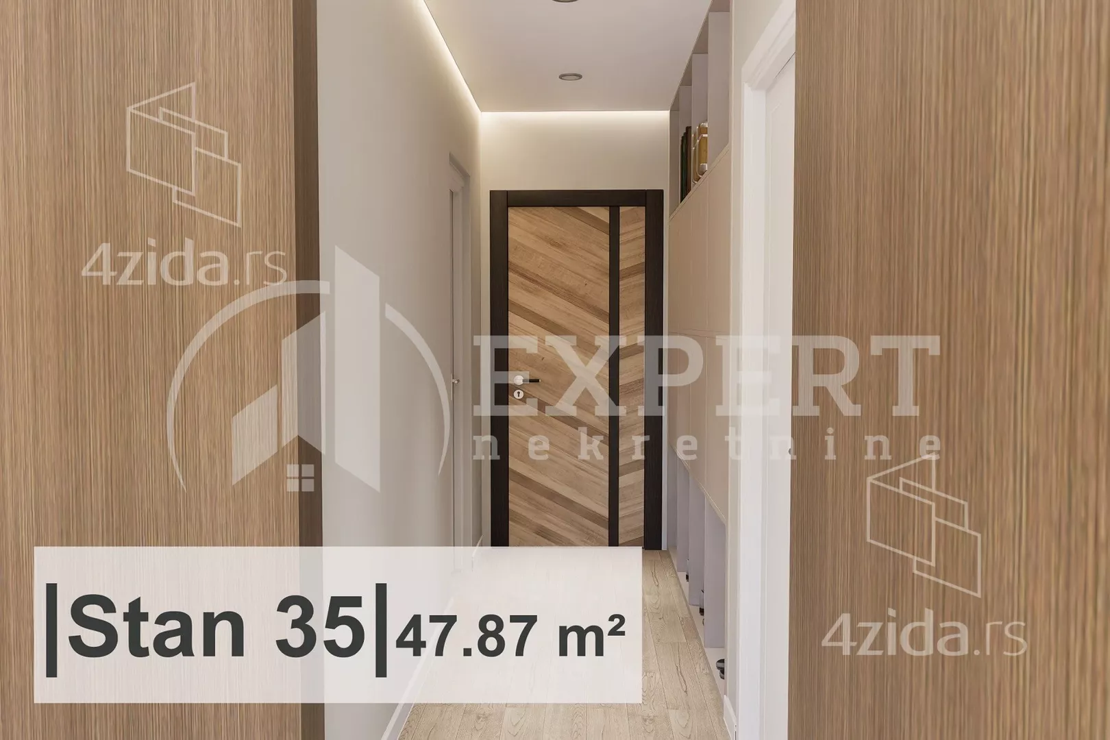 Na prodaju ekskluzivna novogradnja u centru. Stambeno poslovni objekat Po+P+8. Stan je projektovane površine 47,87m2. Nalazi se na osmom spratu, čine ga ulazni hodnik, dnevna soba sa trpezarijom i kuhinjom, spavaća soba, toalet, kupatilo i terasa. Svaka stambena jedinica ima nezavisan sistem grejanja i hlađenja koji je automatizovan i moguće ga je kontrolisati putem mobilnog uređaja. Sistem za grejanje je postavljen kroz pod sa elektro-kotlom, dok je rashladni sistem sa invertor klimama. Svi podovi izvedeni su kao plivajući sa ugrađenom zvučnom izolacijom. Na podu je višelsojni parket, a u kupatilu granitna keramika. Unutrašnja stolarija izrađena je od visoko kvalitetnog furnira, dok je spoljna stolarija od aluminijuma. Za kupce prvog stana postoji mogućnost povratka PDV-a. Postoji mogućnost kupovine parking mesta. Ovo je samo deo naše ponude, za više informacija stojimo Vam na raspolaganju.