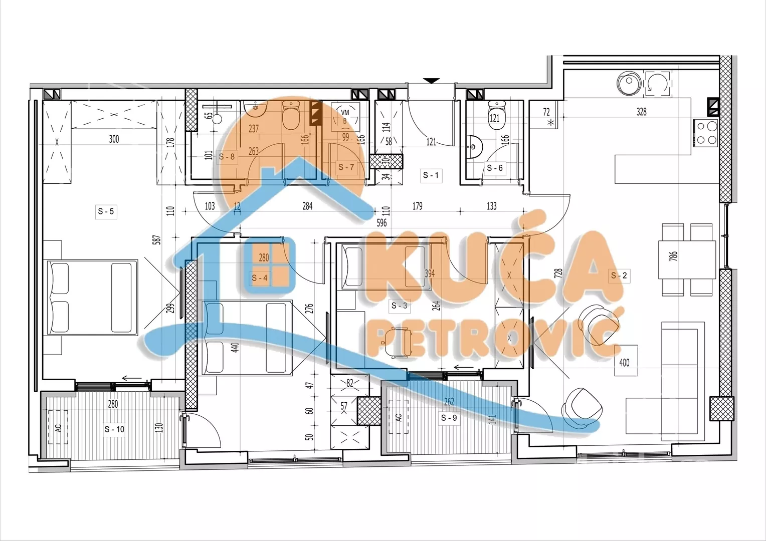 - Prostorije: kupatilo, toaleti (2), terase (2)