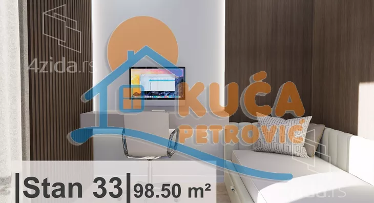 Na prodaju ekskluzivna novogradnja u centru. Stambeno poslovni objekat Po+P+8. Stan je projektovane površine 98,50m2. Nalazi se na osmom spratu, čine ga ulazni hodnik, dnevna soba sa trpezarijom i kuhinjom, tri spavaće sobe, dva toaleta, kupatilo i dve terase. Svaka stambena jedinica ima nezavistan sistem grejanja i hlađenja koji je automatizovan i moguće ga je kontrolisati putm mobilnog uređaja. Sistem za grejanje je postavljen kroz pod sa elektro-kotlom, dok je rashladni sistem sa invertor klimama. Svi podovi izvedeni su kao plivajući sa ugrađenom zvučnom izolacijom. Na podu je višelojni parket, a u kupatilu granitna keramika. Unutrašnja stolarija izrađena je od visoko kvalitetnog furnira, dok je spoljna stolarija od aluminijuma. Za kupce prvog stana postoji mogućnost povratka PDV-a. Postoji mogućnost kupovine parking mesta. Ovo je samo deo naše ponude, za više informacija stojimo Vam na raspolaganju.