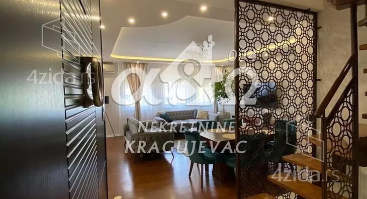 Luxuzno opremljen četvorosoban duplex u Centru sa 2 garažna mesta. Struktura donjeg nivoa: hodnik, kupatilo, dnevni boravak sa izlaskom na terasu, kuhinja, spavaća soba koja izlazi na terasu. Struktura gornjeg nivoa: hodnik, kupatilo, dve spavace sobe, tehnicka prostorija, garderober. Stan se prodaje kompletno opremljen kvalitetnom i vrednom opremom, novim ugradnim namestajem i vrhunskim osvetljenjem i tehnikom. Nalazi se na lokaciji pogodnoj za zivot i izdavanje. U cenu uračunata dva garažna i jedno parking mesto.