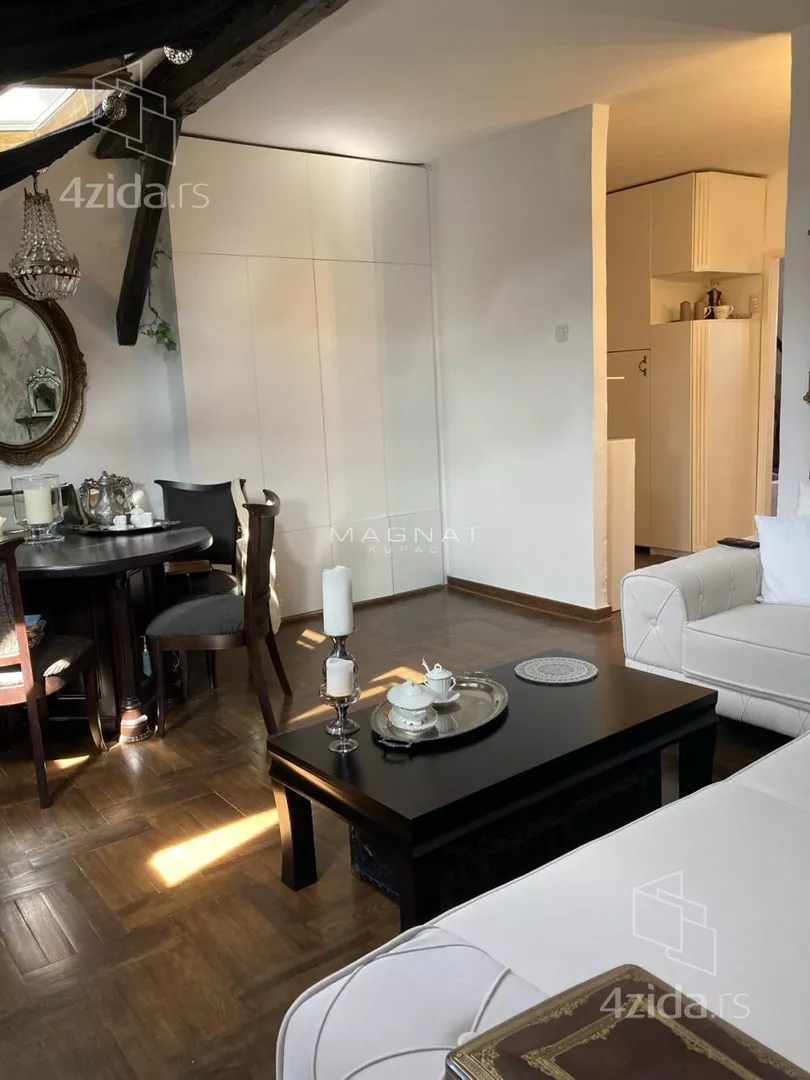 Prodaje se jednoiposoban stan u potkrovlju održavane zgrade. Stan je renoviran 2012 godine. Nov parket, novi prozori, promenjene elektro i vodovodne instalacije. Kompletan krov zamenjen 2022 godine. Grejanje je na TA peći koje su takodje nove i automatski se pale i gase u periodu jeftine struje. Spavaća soba i kupatilo okrenuti su ka dvorištu zgrade, a dnevna soba i trpezarija okrenute ka ulici. Dvostrano je orjentisan što mu omogućava odlično provetravanje i osvetljenje. Stan je izuzetno sunčan, ali je krovna izolacija odlična i prozori imaju posebnu spoljnu zaštitu od sunca tako da je uptreba klime u letnjim mesecima svedena na minimum. Stan je osiguran na sledećih godinu dana na najvišu premiju osiguranja kod Generali osiguranja. Po želji kupca moguć je dogovor i prodaje 90 % nameštaja i bele tehnike po niskoj ceni. Stan nema podrum, ima zajednicku prostoriju stambene zajednice Na par minuta od stana nalaze se tržni centar Galerija, pošta, banke, tri parka, škola, vrtić, velika teretana, prodavnice svih potrebnih artikala za život kao i odlično organizovan gradski prevoz. Moguća kupovina na kredit kao i za kes kupce- Uknjižen na vlasnika 1/1. Infostan 2.500 din ! 18 Oznaka na mapi pokazuje deo grada, ne i tačan položaj zgrade.