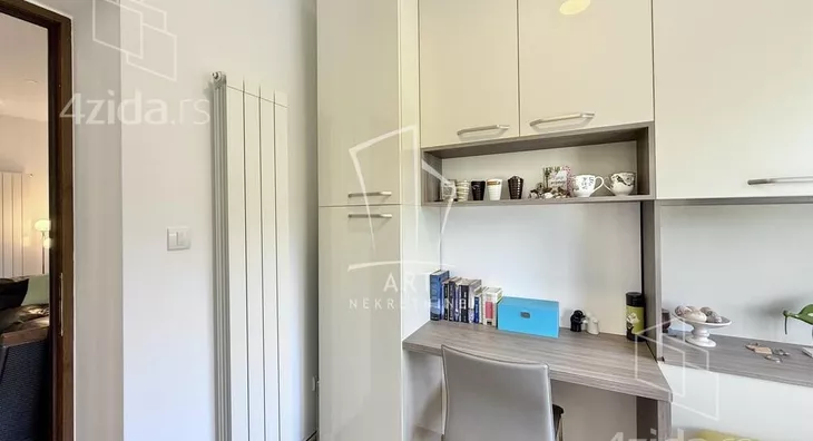 Uknjižen, lux renoviran, namešten, 3.0, eg, 5/6, lift, podrum, dve terase. Sastoji se od dnevne i 2 spavaće sobe, kuhinje, kupatila i 2 terase kao i pripadajućeg podruma. Stan ima 69 m2 i trostrano je orijentisan. Grejanje je etažno-struja a urađena je i termo i zvučna izolacija. Zgrada ima lift i ispred je više parking mesta a iza uređeno dvorište sa dečjim igralištem. U neposrednoj blizini je gradski prevoz i BW. Stan je opremljen kvalitetnim nameštajem i vrhunskom belom tehnikom. Za svaku je preporuku kako za život tako i kao investicija - za izdavanje. Agencijska provizija 2% Agent: Dragan Vučićević br. licence 836 "Art nekretnine" d.o.o. Beograd Reg. br.339 011... (prikaži broj telefona) .