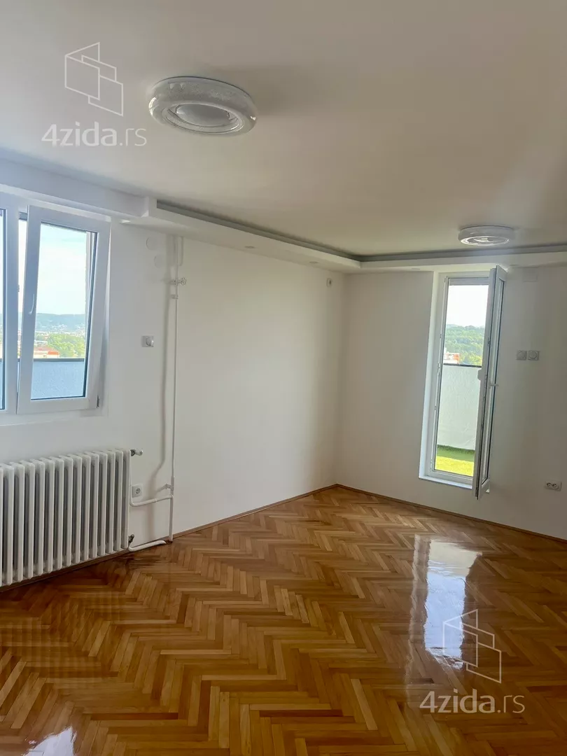 Jednosoban stan u strogom centru grada. Potpuno renoviran. Terasa je površine 15 m2 i nije ušla u kadraturu i sa nje se pruža prelep pogled na grad. Uknjižen.