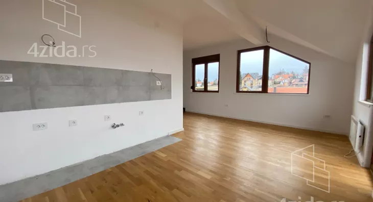 Prodaje se prostran stan površine 57m², smešten na četvrtom spratu moderne zgrade u mirnom i prirodnom okruženju Zlatibora.