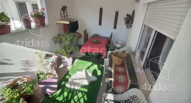 Stan se nalazi na visokom prizemlju visine prvog sprata ima 61kv + 14kv terase.