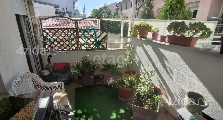 In a quiet street with lots of greenery, we offer a two-sided apartment in a newly built building. The apartment is located on the high ground floor, the height of the first floor is 61 square meters + 14 square meters of terrace. The apartment has two bedrooms, living room, kitchen, bathroom and two terraces. External PVC carpentry and internal solid wood imported from Indonesia, oak parquet, armored door. Near Čuburski Park, Red Cross and South Boulevard The intermediary fee is in accordance with the General Terms and Conditions of the intermediary business of the company "Etagi com" d.o.o.