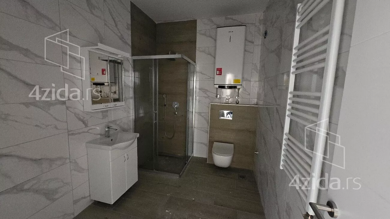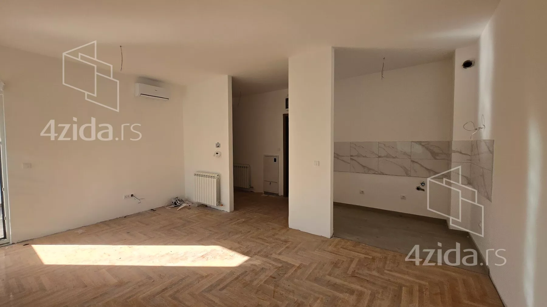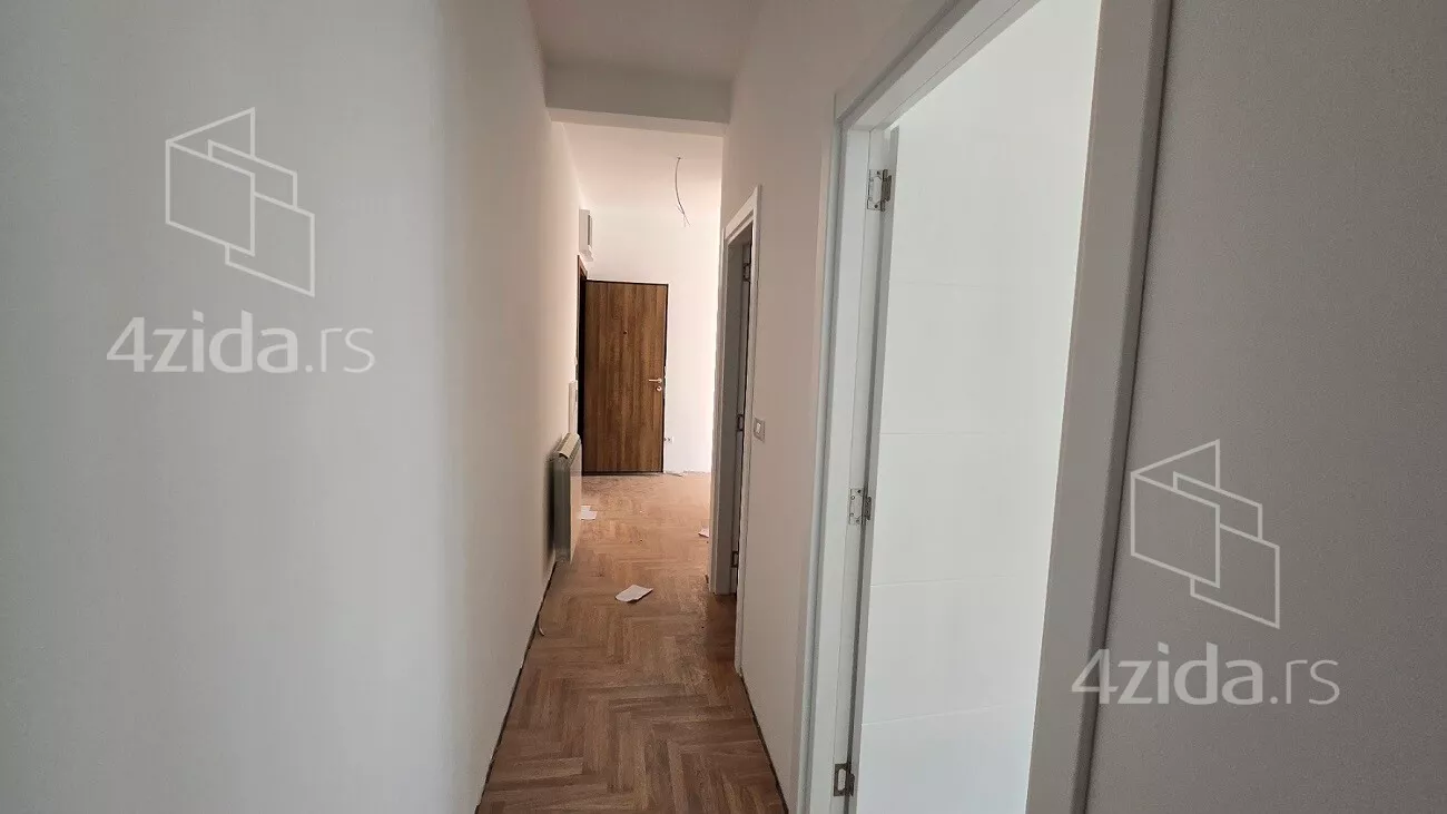Stan se sastoji od dnevnog boravka sa kuhinjom i trpezarijom, tri spavaće sobe, dva mokra čvora i terase. Oprema stana je vrhunskog kvaliteta: sigurnosna ulazna vrata, unutrašnja sobna vrata u dezenu hrasta, hrastov višeslojni parket, ALU stolarija, inverter klime, etažno grejanje