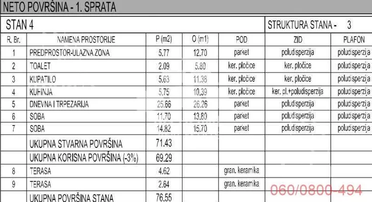 3.0, 76.55m2, terasa, Podno grejanje/ fan coil, lift, 1/6, mogućnost garaže. Građevinska dozvola. 🏗 U toku izgradnja modernih stanova idealnih za savremeni stil života – bez kompromisa po pitanju kvaliteta! ✨ Izdvajamo najvažnije karakteristike: 🔳 Aluminijumska stolarija od poda do plafona sa velikim staklenim površinama 🪟 Staklene ograde na francuskim balkonima + komforne terase 🌀 Aluminijumske roletne poznatog proizvođača 🚪 Luksuzna sigurnosna vrata – visoka zvučna izolacija i bezbednost 🚪 Unutrašnja vrata od farbanog medijapana – tiha zatvaranja, besprekoran dizajn 🪵 Hrastov parket modernog, širokog formata u trendi završnici 🧱 Keramika prve klase – vrhunski italijanski i španski brendovi 🚽 Konzolne WC šolje sa GROHE ugradnim vodokotlićima 🚿 Tuš kabine od kaljenog stakla, funkcionalno dizajnirane ❄♨ Fan-coil sistem + podno grejanje u kuhinji i kupatilu – maksimalan komfor tokom cele godine. Završetak radova planiran za prvu polovinu 2026. godine ✅ Cena je izražena sa uračunatim PDV. Moguće ostvarenje povraćaja PDV-a 🚗 Garažna mesta dostupna: • Na betonu – 28.000 € sa PDV-om • Na klackalici – 22.000 € sa PDV-om Odlična prilika za porodični dom, investiciju ili luksuzan gradski život! Za više informacija pozovite: 062... (prikaži broj telefona) Broj u registru posrednika 1308 Agencijska provizija 2%