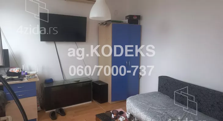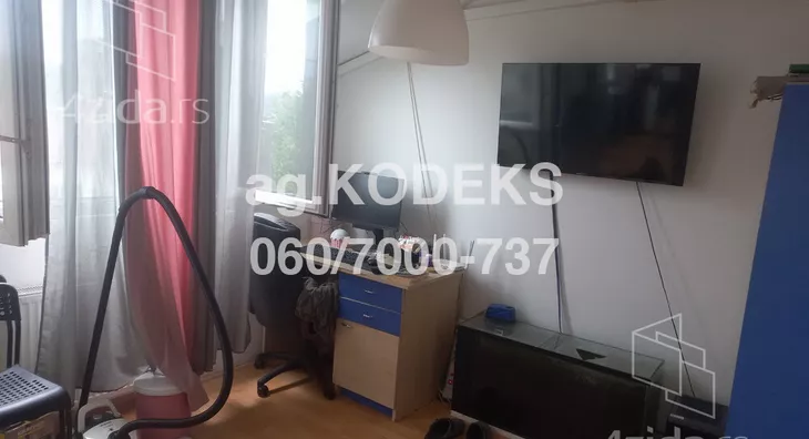 Prodaje se garsonjera od 24 mkv na V spratu (nadgradnja) stambene zgrade. Sastoji se od ulaznog predosblja, sobe, kuhinje gde moze biti i manja trpezarija i sanitarnog cvora. Nema terasu. Stan je svetao i sa lepim pogledom. Pored prozora ima kosine koje pocinju od 1,92m i zavrsavaju se na 2,62m. PVC prozori, laminat, tus kabina, klima, interfon, KTV, ostava umesto podruma na istom spratu, ... Zgrada bez lifta. U dvoristu zgrade ima mesta za parkiranje. Dokumentacija je pregledana i cista. Uknjizeno je vlasnistvo prodavca. Zgrada ima upotrebnu dozvolu. Moguca kupovina i iz stambenog kredita banke. Odlican je za izdavanje. Kratak rok za iseljenje, do nedelju dana.