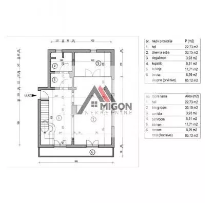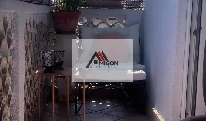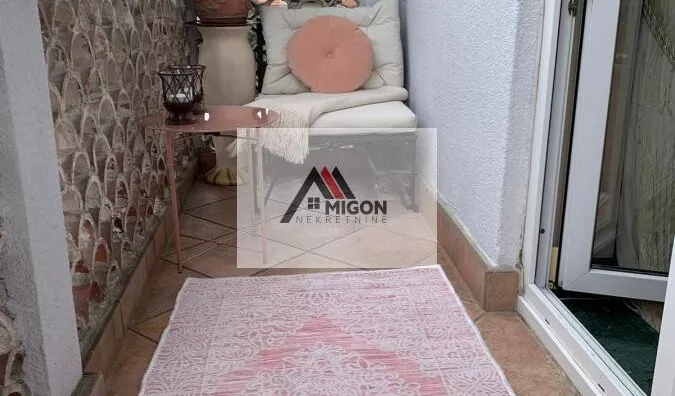 Stan se sastoji od dnevnog boravka koji je centralno lociran, veoma prostan i svetao sa mermernim kaminom. Kuhinja i trpezarija: kompletno opremljeni, sa visokokvalitetnim aparatima i enterijerom renomiranog Italijanskog dizajnera, tri spavaće sobe, dva kupatila ( jedno kupatilo sa đakuzijem, velikom terasom sa prekrasnim pogledom na grad i zelenilo.
