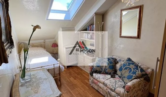 Rooms: 3 bedrooms, 2 bathrooms ( 1 bathroom with Jacuzzi). Living room: centrally located very spacious and very bright with marble fireplace. Kitchen and dining room: fully equipped, with high quality appliances and interior design by a renowned Italian designer. Terrace: a large terrace with a wonderful view of the city and the greenery. Building: with only 6 apartments and 2 floors, well maintained, with a spacious garden that the tenants use and design. Central air conditioning. Nearby: supermarket and drugstore 100m away, exclusive shops, restaurants and cultural destinations.