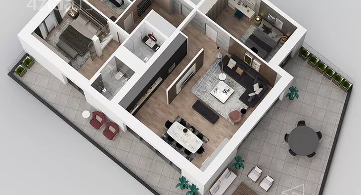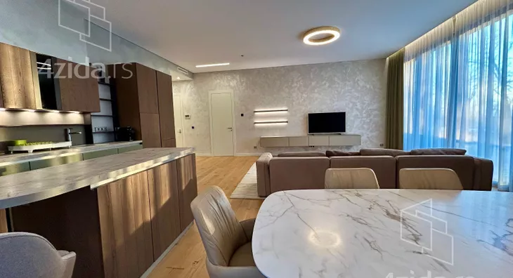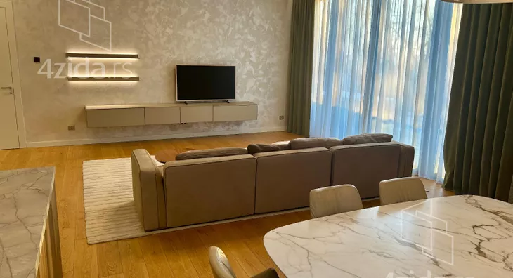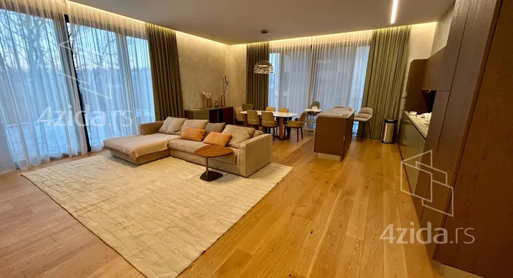 Luksuzan stan u mirnom delu Dedinja, naselje Green Hill. Stan ima 3 spavaće sobe i 2 kupatila, unutrašnje površine od 122 m2 i terasu od 105 m2 na koju se može izaći iz dnevnog boravka i master spavaće sobe. Stan ima pogled na šumu i panoramu Košutnjaka i Vidikovca. Dnevni boravak je zapadne orijentacije.