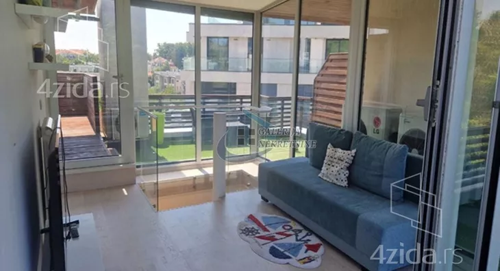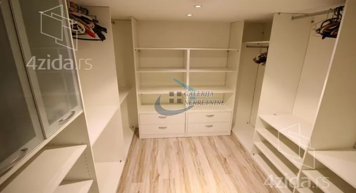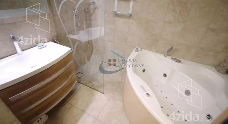 U prilici smo da Vam ponudimo vertikalu na četiri nivoa, koja se nalazi u zgradi iz 2011, sa ukupno 3 vertikale. Sve instalacije su kompletno odvojene, pa funkcioniše kao nezavisna celina i pruža osećaj luksuza življenja u kući. Visoko kvalitetna gradnja, sa prvoklasnim materijalima i unutrašnjom obradom. Građena po zahtevima i potrebama vlasnika, pa je odlikuje luksuz i velika funkcionalnost prostora. Visoko prizemlje je koncipirano kao dnevni blok sa dnevno-trpezarijskim delom, odvojenom kuhinjom, toaletom i prelepom terasom od 31m2. Interesantan detalj je akvarijum koji se nalazi između kuhinje i dnevne sobe. Na prvom spratu je spavaći blok, sa tri spavaće sobe i kupatilom. Drugi sprat je namenjen za uživanje i rad, jer je radna soba sa tri strane u staklu, okružena velikom terasom površine 34m2, sa otvorenim pogledom ka Avali i Šumadiji. I ova terasa je namenjane za uživanje ali i sunčanje. Nivo u niskom prizemlju je namenjen za garažu, garderober, instalacije grejanja ali i za jednu sobu površine 25m2, koja može lako da se pretvori u studio. Garaži, veličine 25m2, koja je pogodna i za veća SUV vozila, se pristupa rampom sa podnim grejanjem. Kola je moguće parkirati i na ulici ispred kuće. Na ovom nivou se nalazi i garderoba veličine 15m2.
