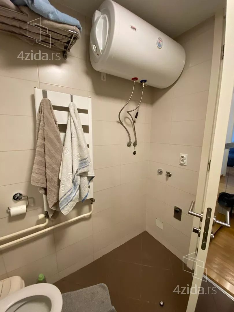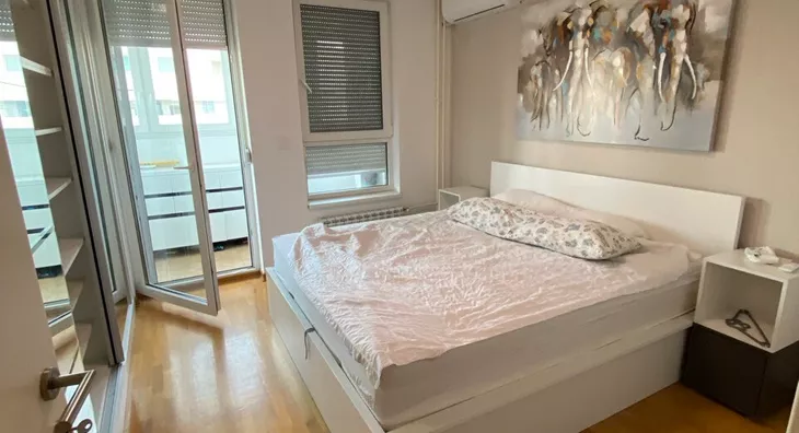 - Opremljenost: Namešteno - internet, TV, klima, kuhinjski elementi, sudo mašina, frižider, mikrotalasna rerna, šporet, rerna, ležaj, plakar, ugradni plakar