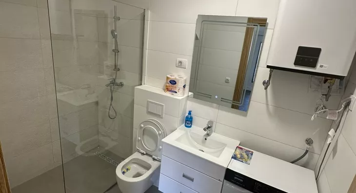 - Opremljenost: Namešteno - internet, TV, klima, veš mašina, kuhinjski elementi, frižider, zamrzivač, šporet, rerna, ležaj, plakar