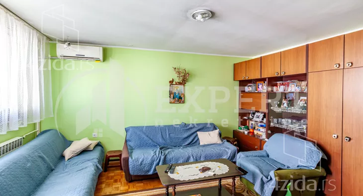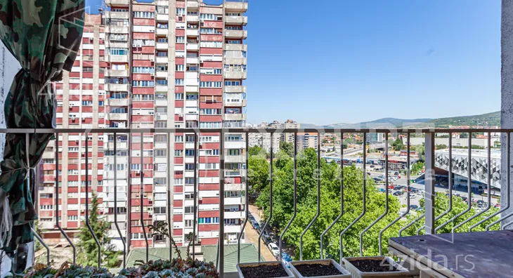 Na prodaju komforan, osvetljen i očuvan stan na IX spratu (od X) kvalitetne zgrade od armiranog betona sa dva lifta. Atraktivna lokacija i orijentacija stana (zapad), koji je u izvornom ali očuvanom stanju i prodaje se sa kompletnim nameštajem i tehnikom ( tri klima uređaja). Sastoji se od ulaznog hodnika, prostrane dnevne sobe sa izlaskom na lođu, izdvojene trpezarije, izdvojene kuhinje i ostave (manja lođa). U spavaćem degažmanu su dve spavaće sobe ( iz jedne se izlazi na lođu), kupatilo i toalet. U hodniku i spavaćim sobama ima puno ugradnih plakara. Na podovima je parket, stolarija drvena, očuvana, a odjavljeno je centralno grejanje i svi radijatori povezani na sopstveni el.kotao. Stan ima pripadajući podrum i slobodan parking u dvorištu zgrade. Odlična investicija. Uknjižena privatna svojina koju je moguće kupiti stambenim kreditom. Za više informacija pozovite agenciju.
