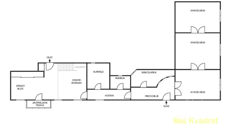 Uknjižen na 100m2 korisne površine, a mereno ima 120m2, plus terasa 3m2, plus galerija 8m2.