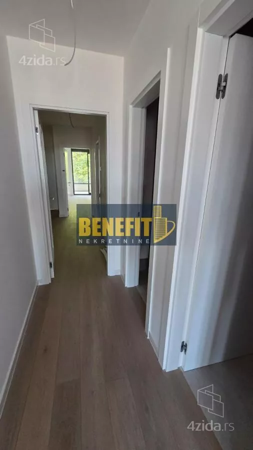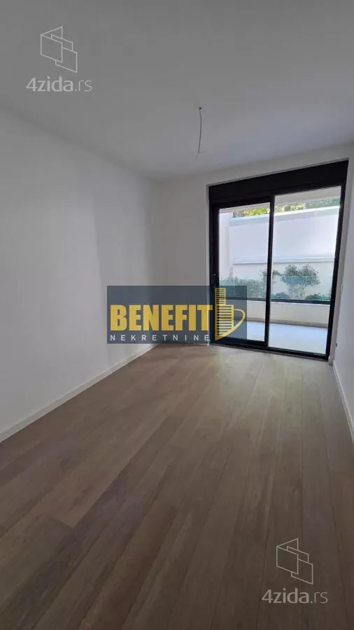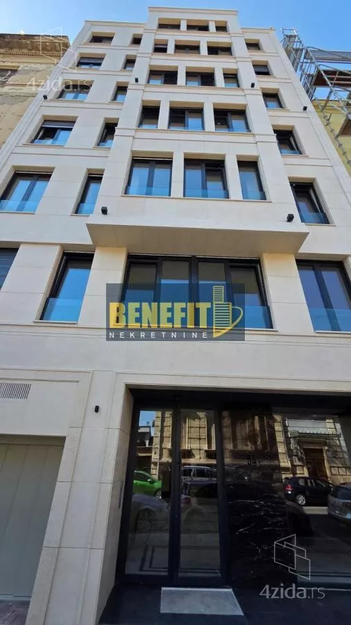 Stan se nalazi na 1.spratu moderne butik-zgrade, objekta sa malim brojem stanova (na svakoj etaži po jedan stan), u čijoj su izgradnji korišćene najnovije tehnike i najbolji materijali: fasada od Selina kamena i staklenih ploha, troslojna niskoemisiona stolarija, Italijanska zidna i podna keramika I klase (Ariostoa), sanitarije Villeroy Boch i Hans Grove, Lis-tione Giordano parket, Bticino smart sistem... Grejanje i hlađenje je preko toplotnih pumpi i konvektora u plafonima, a u kupatilima je podno grejanje. Spratna visina iznosi 2,95m.