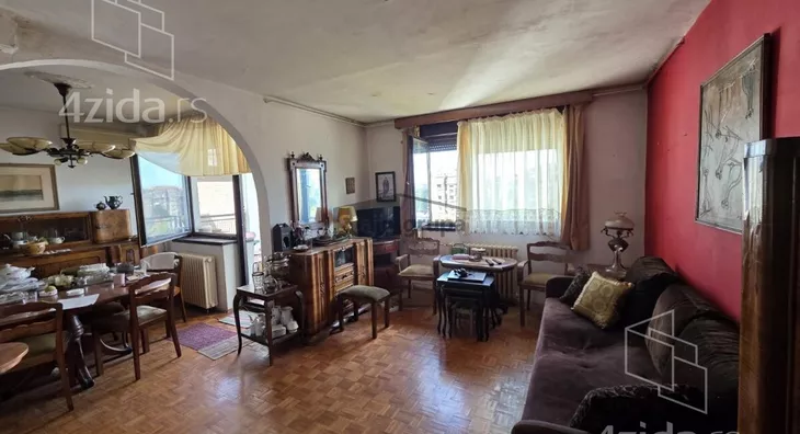 Prostorije: predsoblje, dnevni boravak, trpezarija, kuhinja, dve spavaće sobe, kupatilo, toalet, terasa, lođa.