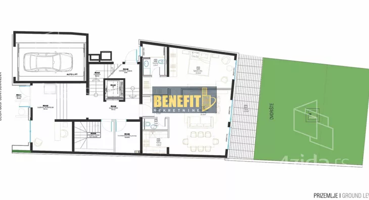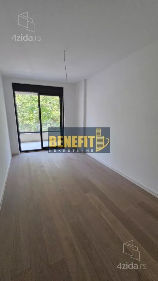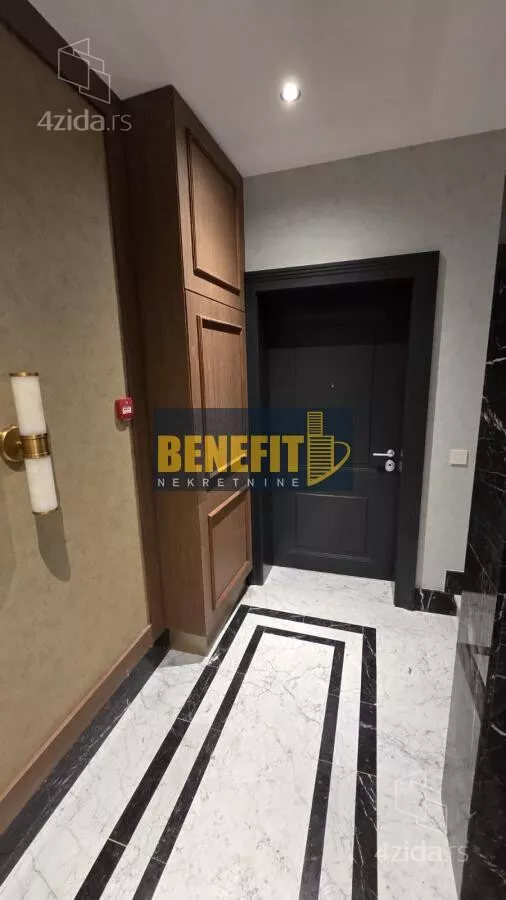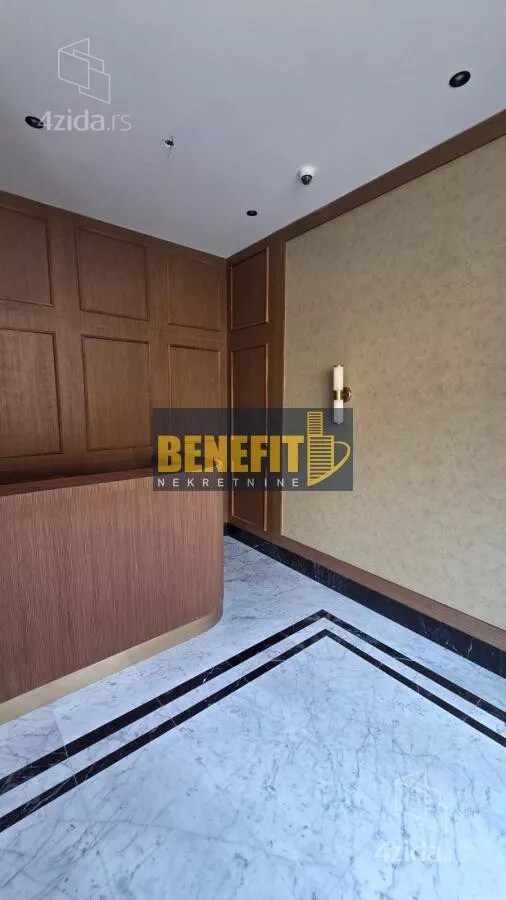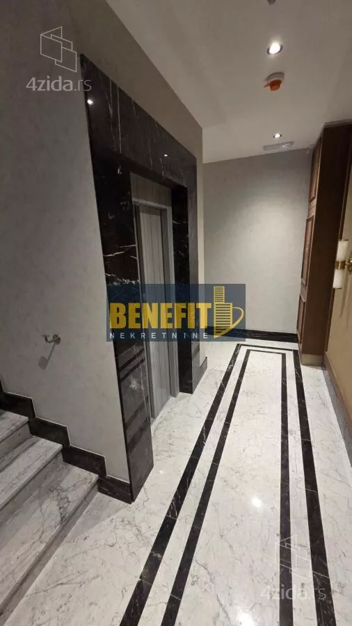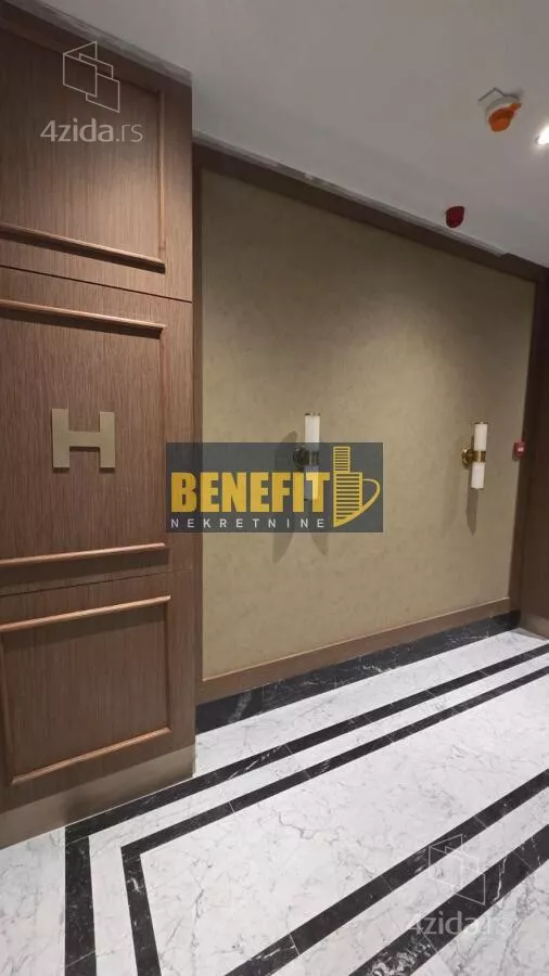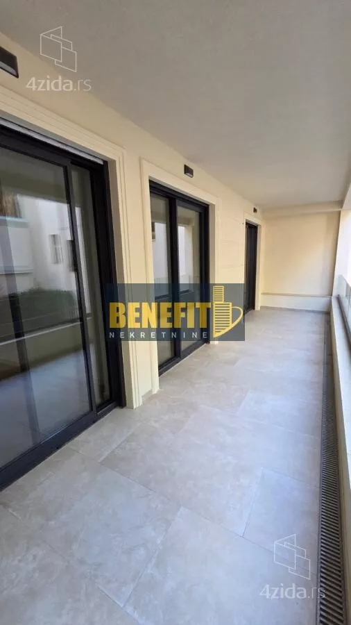 Stan se nalazi na prizemlju moderne butik-zgrade, objekta sa malim brojem stanova (na svakoj etaži po jedan stan), u čijoj su izgradnji korišćene najnovije tehnike i najbolji materijali: fasada od Selina kamena i staklenih ploha, troslojna stolarija, Italijanska zidna i podna keramika I klase (Ariostoa), sanitarije Villeroy Boch i Hans Grove, Lis-tione Giordano parket, Bticino smart sistem... Grejanje i hlađenje je preko toplotnih pumpi i konvektora u plafonima, a u kupatilima je podno grejanje. Spratna visina iznosi 2,95m.