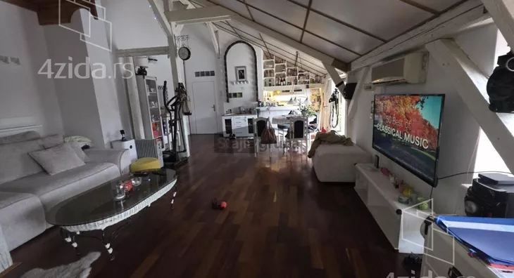 Po strukturi dvosoban, uknjižen na 110m2 a ima 125m2.