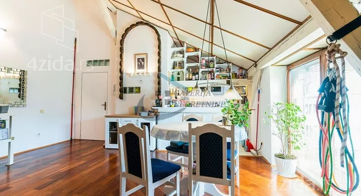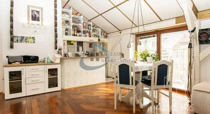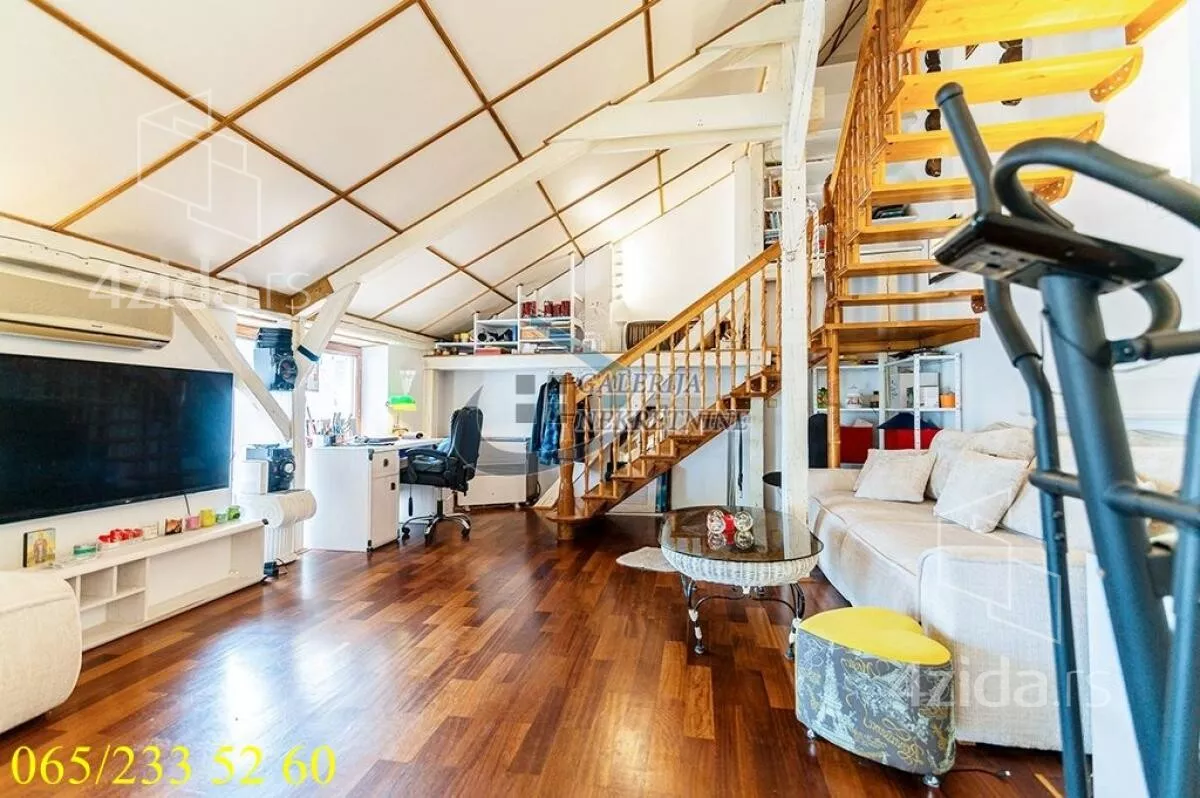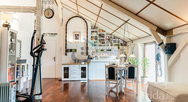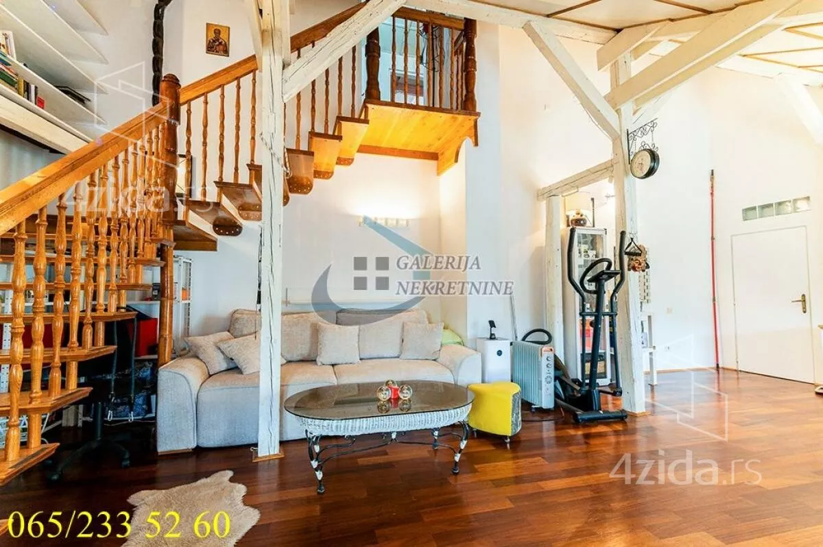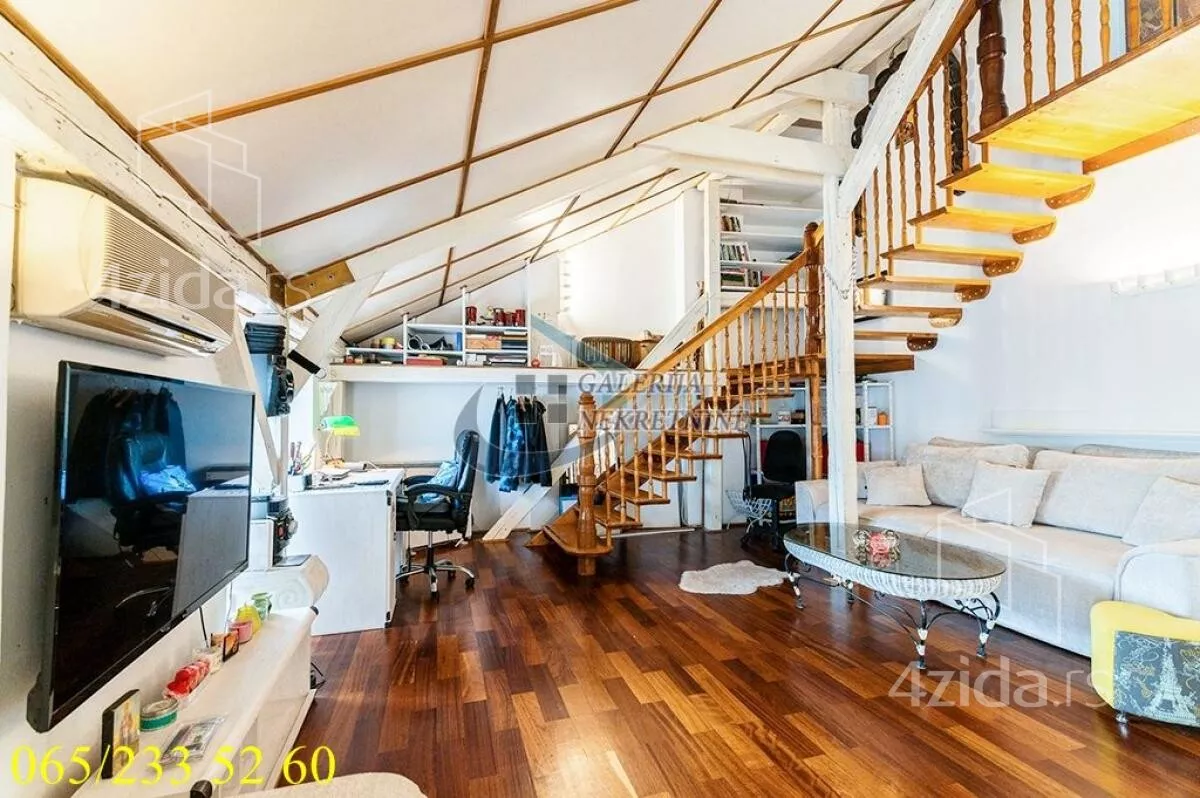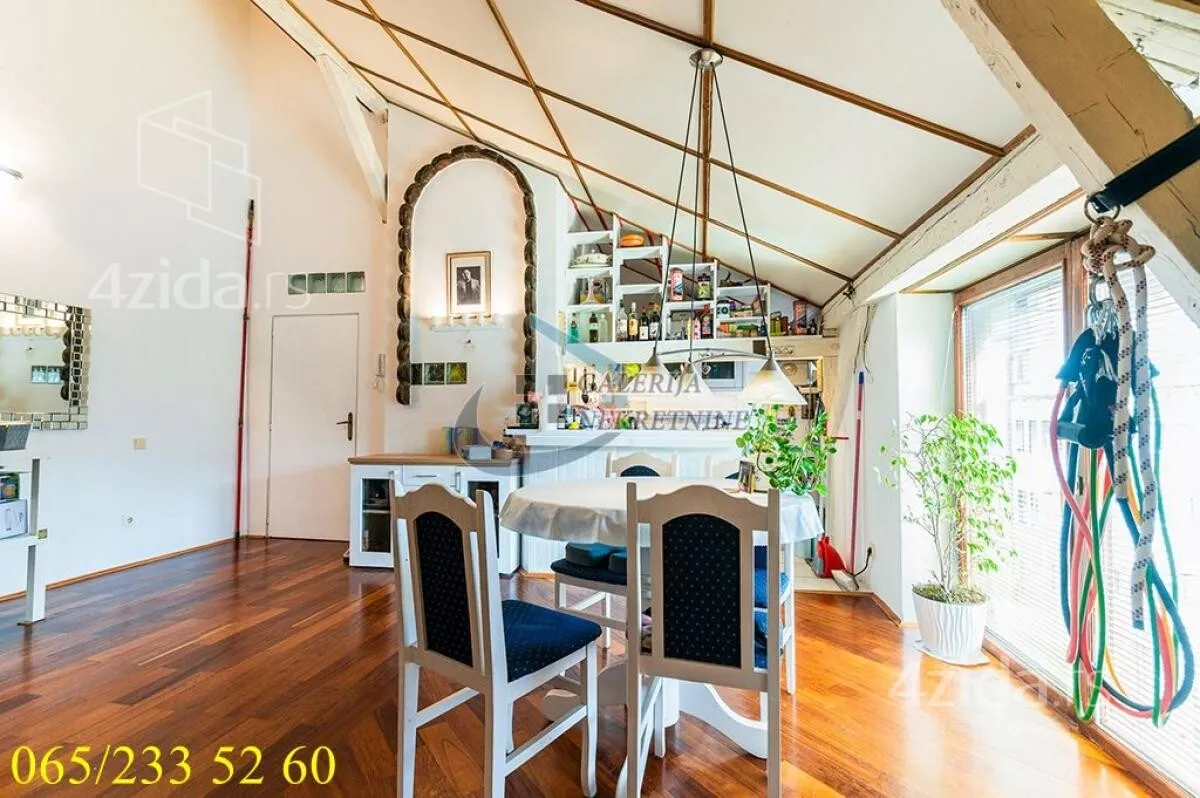 U prilici smo da vam ponudimo šarmantni trosobni duplex u potkrovlju salonske četvorospratne zgrade bez lifta, zidane pre Drugog svetskog rata. Zgrada je u dobrom stanju spolja i iznutra i redovno održavana. Stan je dvostrano orijentisan jugoistok-severozapad i odlično osvetljen dnevnim svetlom. Adaptibilan, prostorije su vrlo funkcionalno raspoređene pa je prostor maksimalno iskorišćen. Na donjem nivou je dnevni deo a na gornjem spavaći sa dve spavaće sobe, kupatilom i prelepom velikom terasom sa lepim, širokim i otvorenim pogledom preko krovova Dorćola, Save i Dunava i ka prostranoj vojvođanskoj ravnici. U odličnom je stanju, sređen i uređen sa puno ljubavi i ukusa i značajna ulaganja nisu neophodna. Grejanje je na struju (TA) pa su računi za infostan niski. Izvodljiva je ugradnja lifta.