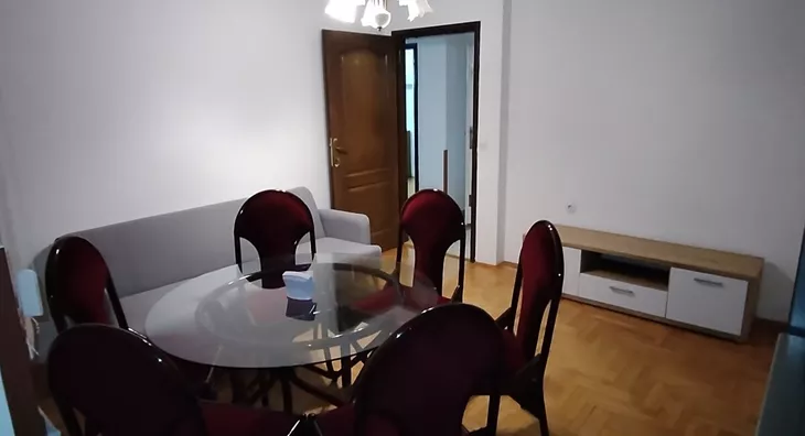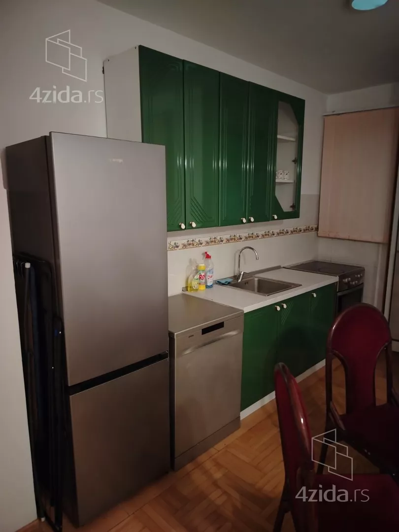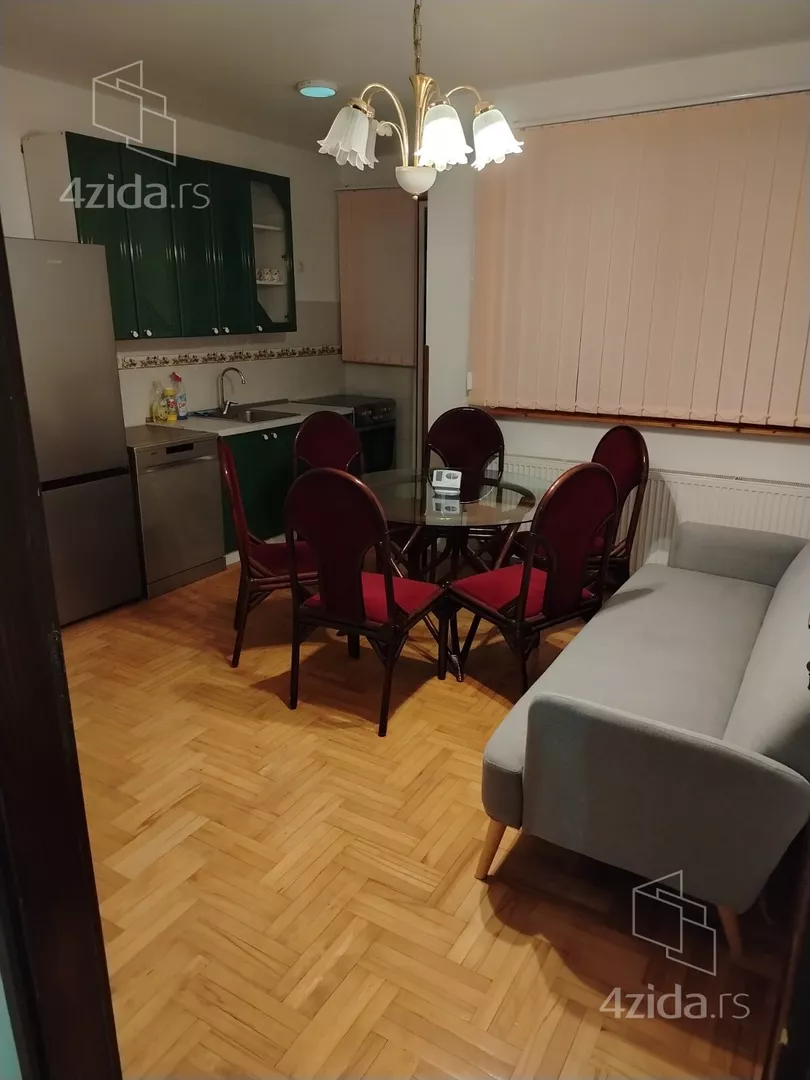 - Opremljenost: Namešteno - kuhinjski elementi, frižider, šporet, rerna, ležaj, plakar, ugradni plakar