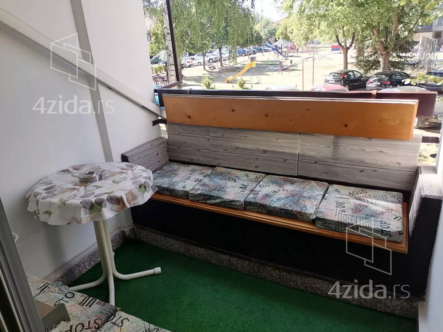 Na prodaju dvosoban stan u niskom naselju Duvaniste na opstini Medijana. Stan pored dnevne sobe sa trpezarijom poseduje i jednu spavacu sobu, kupatilo i odvojenu vesernicu, kuhinju i dve terase od kojih je jedna zatvorena. Stan se nalazi u centralnom delu naselja. Vrtic i osnovna skola su na 2 minute hoda, takodje su i marketi LIDL i DIS na istoj udaljenosti.