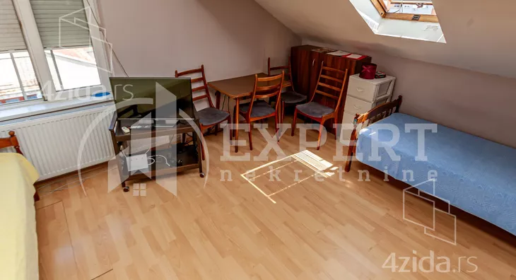 Na prodaju garsonjera na odličnoj lokaciji, u manjoj , mirnoj ulici, nadomak Ekonomskog i Pravnog fakulteta. Zbog samog položaja odlična investicija za one koji se bave izdavanjem. Garsonjera je uknjižene površine 22 m2, sastoji se od ulaznog dela, prostora za kuhinju, višenamenske sobe i kupatila, plus izdvojenog dela u tavanu koje je moguće prepraviti u spavaći. Nalazi na šestom (poslednjem) spratu u zgradi kvalitetne gradnje bez lifta, na podovima je laminat, u kuhinji I kupatilu pločice, klima uređaj. Uknjižen. Kupovina isključivo za gotovinu. Ovo je samo deo naše ponude, za više informacija javite se i posetite naš sajt.