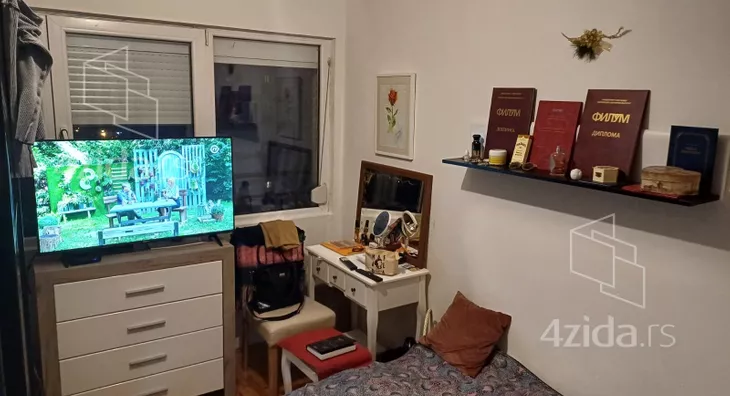 - Opremljenost: Namešteno - TV, klima, veš mašina, kuhinjski elementi, frižider, zamrzivač, mikrotalasna rerna, šporet, rerna, ugradni plakar