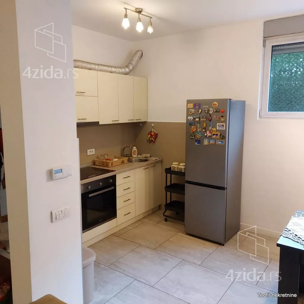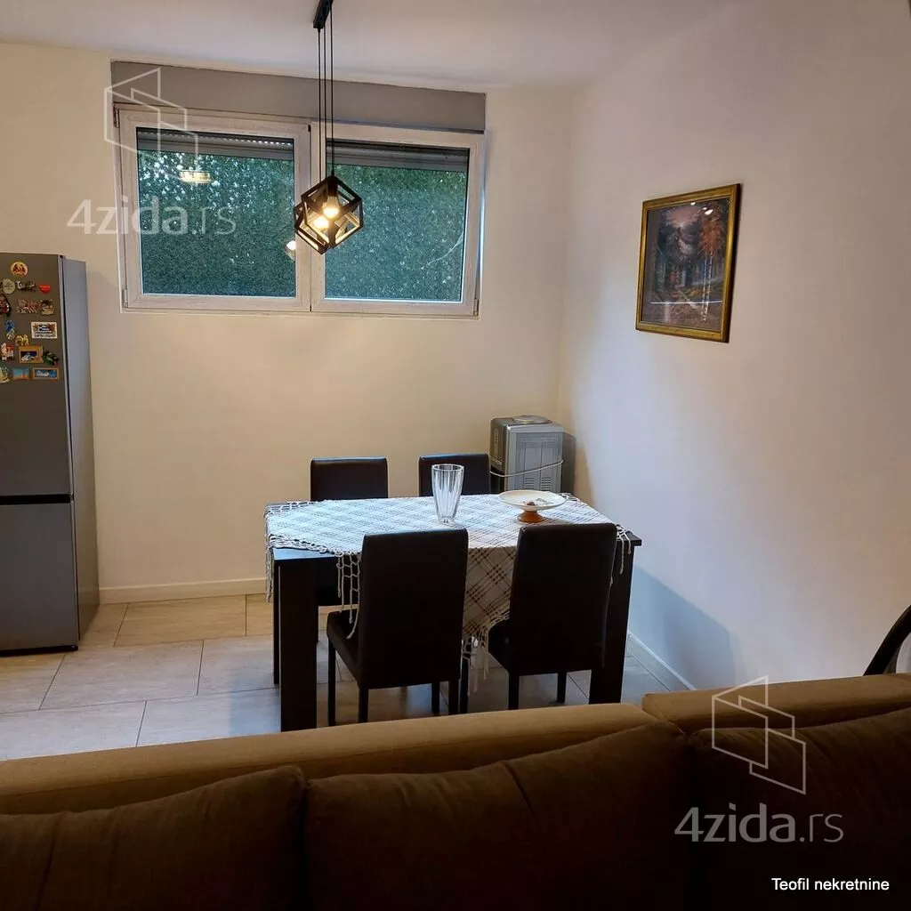 Odličan jednoiposoban stan, 42m2, u polusuturenu (ukopan oko 120cm) trospratne zgrade (iz 2017.god.) sa samo 8 stanova, lift, interfon, geotermalno grejanje (stan se greje i hladi preko zidova)... Odlična gradnja, mirna ulica, blizina Ugrinovačke sa jedne strane i cara Dušana sa druge strane. Blizina škole, vrtića, gr. prevoza.. Od prostorija: dnevno-trpezariski boravak, kuhinja, spavaća soba, kupatilo i ulazni hodnik. Dosta svetlosti. Aluminijumska stolarija. Niski režiski troškovi. Prodaje se komplet namešten (nov nameštaj i bela tehnika).