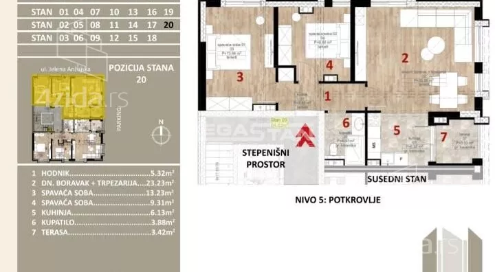 Novogradnja vrhunskog kvaliteta. Uz stan ide i parking mesto i ostava. Rok završetka zgrade 31.12.2025. Za svaku preporuku. Agencijska provizija za kupca 2%. Broj agencije u Registru posrednika 298. Mapa je informativnog karaktera, ne prikazuje tačnu lokaciju nekretnine.