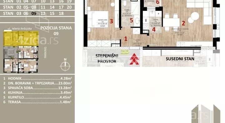 Novogradnja vrhunskog kvaliteta. Uz stan ide i parking mesto i ostava. Rok završetka zgrade 31.12.2025. Za svaku preporuku. Agencijska provizija za kupca 2%. Broj agencije u Registru posrednika 298. Mapa je informativnog karaktera, ne prikazuje tačnu lokaciju nekretnine.