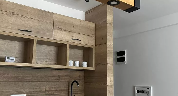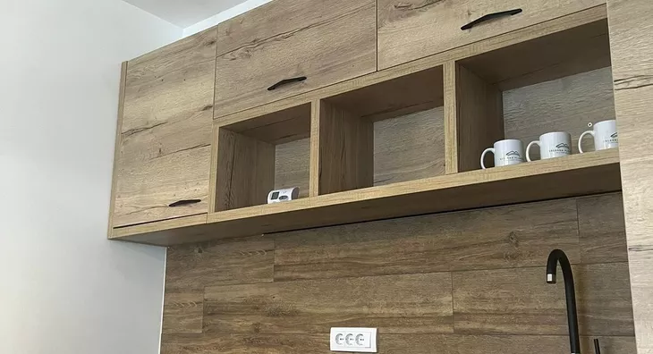 sastoji se od: dnevno boravka sa kuhinjom i trpezarijom (open space), spavaće sobe, kupatila i terase sa pogledom ka šumi (oaza mira i tišine).