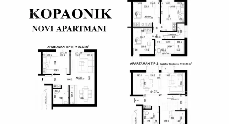 Kopaonik, useljivi novi apartmani sa ekstra pogledom, ski lift do staza u centru .. / naselje Treska, na 1600m nadmorske visine, apartmani pogodni za zimski i letnji turizam, komplet opremljeni sa nameštajem i tehnikom, kablovska, internet, wi-fi, televizor, kuhinja, frižider, hidromasažna kupatila, norveški radijatori, terase, parkinzi, objekat je povezan sa ski stazama u centru (ski lift br.5); trenutno je na raspolaganju 2 tipa apartmana, 2.0 40m2 (36,53+T) (jedna spavaća soba), i dplx 4.0 82m2 (37,88+42,42+T) (tri spavaće sobe), cena je 2.200 e/m2 za komplet namešten apartman a 2.000 e/m2 za nenamešten ..