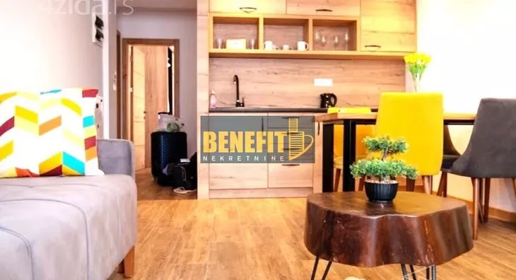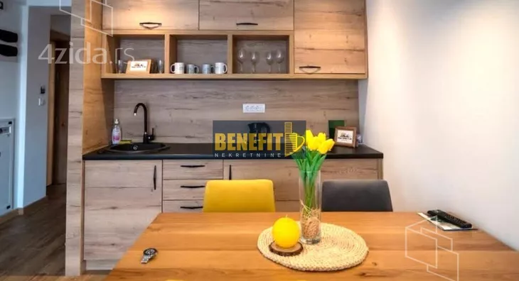 Apartman je površine 37m2, a nalazi se na prvom spratu. Poseduje dnevni boravak sa kuhinjom i trpezarijom, odvojenu spavaću sobu, kupatilo i lepu terasu.