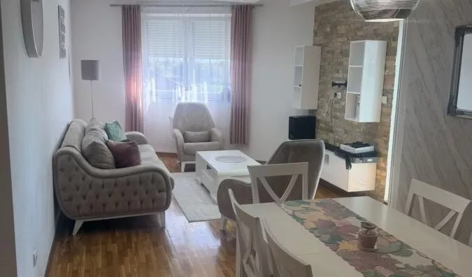 Kompletno je namešten i opremljen zaista kvalitetnim uređajima, LG dve klime inverter, Bosh bela tehnika, LG veš mašina kombinovana, Dallas garnitura, nameštaj od medijapana,....