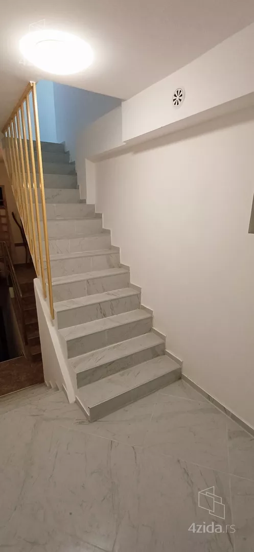 Trosoban stan 60m² na Senjaku u novoizgrađenoj zgradi sa 4 stana. Zaseban ulaz za jedina 2 odvojena stana na 2.spratu. Mogućnost korišćenja zajedničkog predulaza u stan od 10m² za dodatne ormare i cipelarnike. Potpuno nov stan nikada korišćen sa spoljašnjom Izolacijom 15cm. Balkonska terasa sa fenomenalanim pogledom. Kupatilo je kompletno opremljeno sa svim sanitarnim elementima,kao i tuš kabinom, kvalitetnim bojlerom, izvedenom ventilacijom ka spolja. Sva kvalitetna pregradna vrata sa odličnim bravama. Kuhinja i kupatilo sa vrhunskim pločicama 1.klase koje trpe toplotu i habanje u celoj svojoj površini od poda do plafona. Stan je kompletno opremljen odlično dizajniranom LED rasvetom. Ulazna vrata su izolaciona sa višestrukom bravom zaključavanja. Prozori i vrata balnonska aluminijumska i ostala pvc na kojima su svi sa aluminijumskim roletnama, komarnicima i trakastim zavesama. Harmonika vrata su ugrađena radi mogućnosti modulacije prostora. Zidovi kao i plafoni su svi kompletno urađeni od izolacionih blokova. Unutrašnji zidovi su kompletno obloženi dodatnim gipsanim pločama za bolju ekološku, toplotnu i zvučnu izolaciju. Iznad stana je mont ploča i nakon toga krov takvo da nema komšija iznad stana sa stambenim prostorom. Grejanje je sa 2 vrhunska invertera japanske marke Fujitsu sa najboljom energetskom efikasnošću, ultra tihe i Wi-Fi podešavanjem. Daljinsko očitavanje brojila. Blizina osnovne škole na 200 metara, a autobusko stajalište na 30 metara. Pijaca i strogi centar grada na 800 metara. Mogućnost kupovine 2 stana na istom spratu. Drugi stan ima 46 m². Oba stana su uknjižena. Vlasnik 1/1