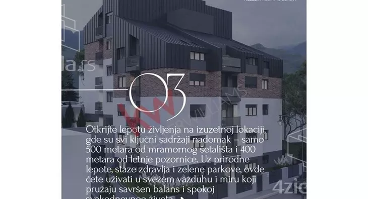 Upoznajte našu prvu, modernu stambenu zgradu u izgradnji, smeštenu u jednom od najlepših delova Sokobanje u blizini parkova Borići i Čuka 2, a u neposrednoj blizini Specijalne bolnice za plućne bolesti "Sokobanja" i buduceg EOL kompleksa!