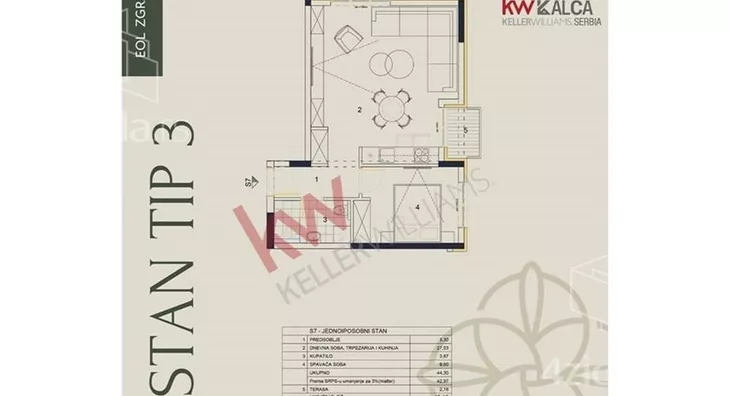 - Prostorije: kupatilo, terasa
