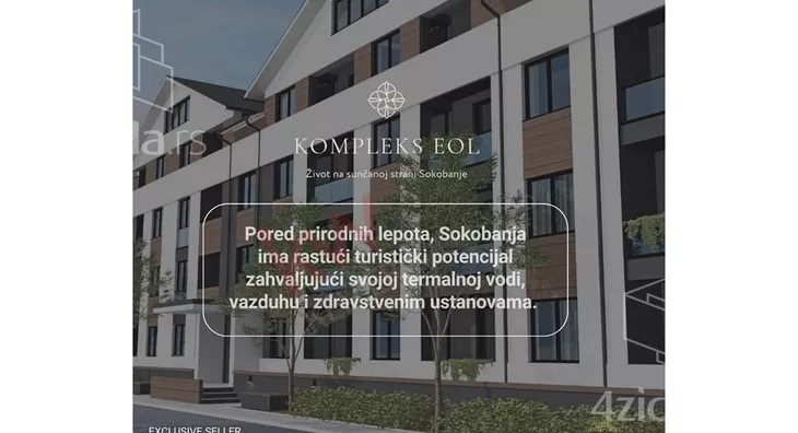 Tražite savršen dom ili pametnu investiciju? Upoznajte našu novu, modernu stambenu zgradu u izgradnji, smeštenu u jednom od najlepših delova Sokobanje! Ova lokacija se ističe izvanrednim klimatskim uslovima, čistim vazduhom, blizinom termalnih izvora i prelepom prirodom. Sa različitim kvadraturama u ponudi, ovo je idealna prilika da sebi obezbedite komforan život ili profitabilnu investiciju. Na samo nekoliko koraka od ključnih sadržaja – 500m od letnje pozornice i 400m od Mermernog trga, stambeni kompleks pruža balans između dinamičnog centra i opuštajuće prirode. Ne propustite šansu da postanete deo ovog ekskluzivnog projekta u Sokobanji – mesto gde se zdrav život i prirodna lepota spajaju!
