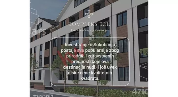EOL kompleks je pravo mesto za Vas! Investitor na ovom projektu je biser Sokobanje - Hotel SUNCE, tako da je planiran kompleks premium kvaliteta sa dosta pratećeg sadržaja u vidu otvorenog bazena, mobilijara za decu, restorana, i preko 200 apartmana raznih kvadratura.