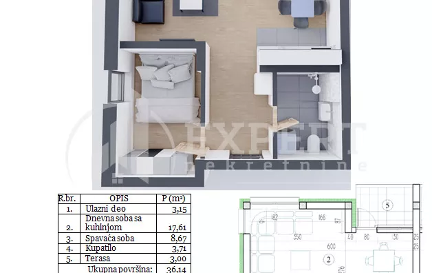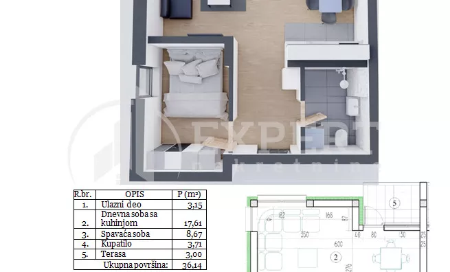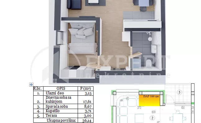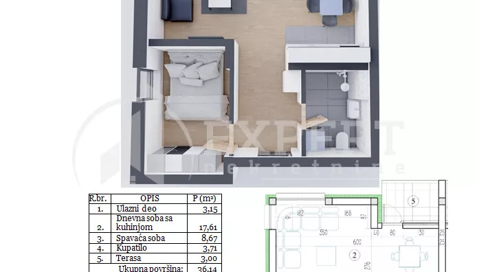 Na prodaju jednoiposoban stan apartmanskog tipa u izgradnji, u stambenom objektu SU+P+II+PK, u Sokobanji. Stan je projektovane povšine 36.14m2 i sastoji se od ulaznog hodnika, dnevne sobe sa kuhinjom i trpezarijom, spavaće sobe, kupatila i terase. Ova struktura nalazi se u prizemlju, na I,II spratu i u potkrovlju, u zgradi sa liftom.. Zgrada ispunjava sve najnovije standarde izgradnje, kvalitetna Veka PVC stolarija u antracit boji sa roletnama i four season staklima, kupatilo i kuhinja sa prvoklasnom podnom i zidnom keramikom, kvalitetan parket tarket debljine 14mm koji je fabricki lakiran otporan na habanje. U stanovima se postavljaju norveški radijatori i klima. Uz stan ide pripadajuće parking mesto. Završetak radova je predviđen krajem 2024. godine. Cena stana je 61.480EUR-a, sa povraćajem PDV-a za kupce koji ostvaruju pravo na oslobođenje. Ovo je samo deo naše ponude, ovaj kao i druge stanove sa većim brojem fotografija možete pogledati na našem sajtu..