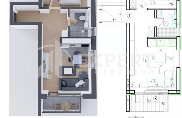 - Prostorije: kupatilo, terasa